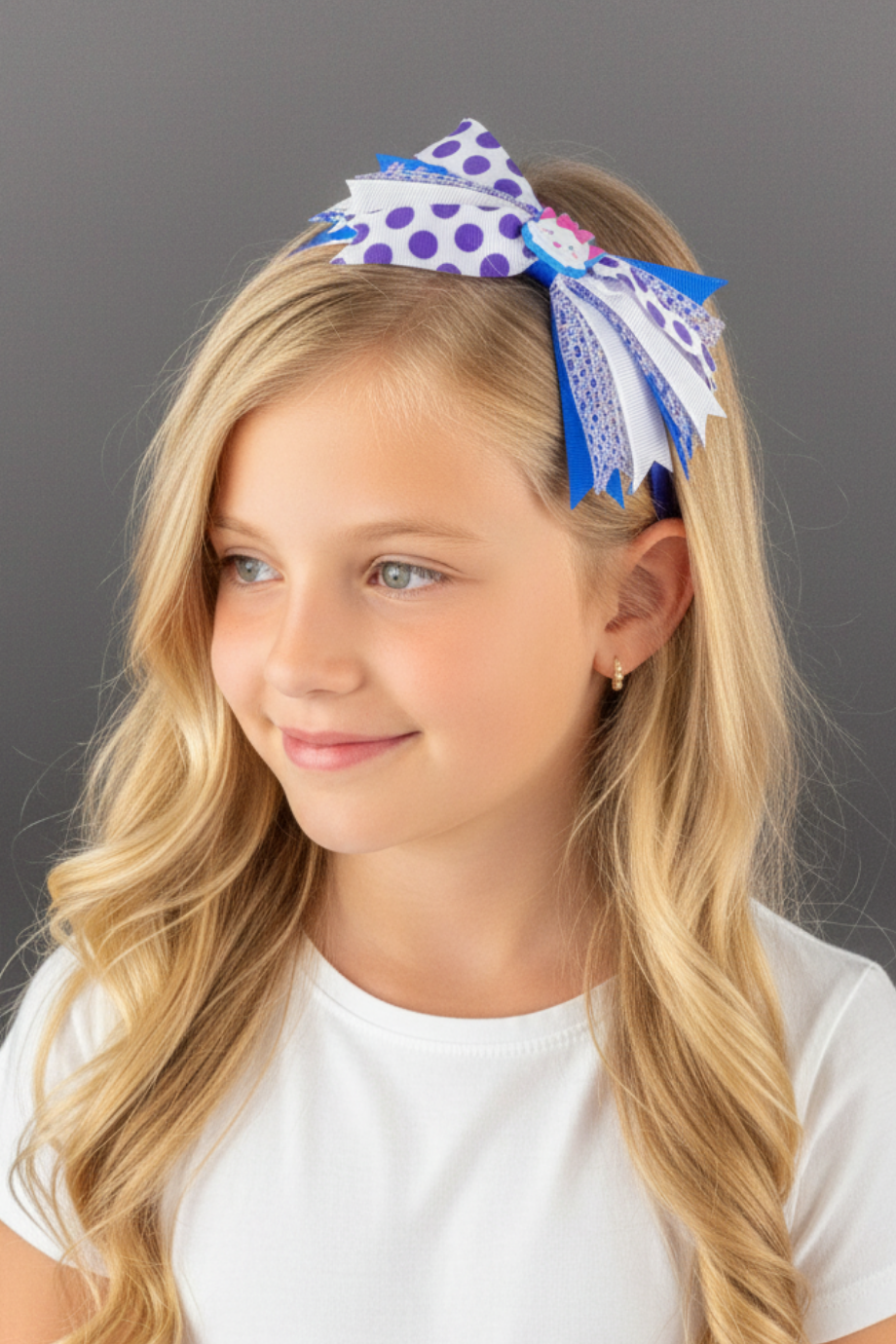 Çok Fiyonklu Kedi Figürlü Çocuk Tacı Saks
