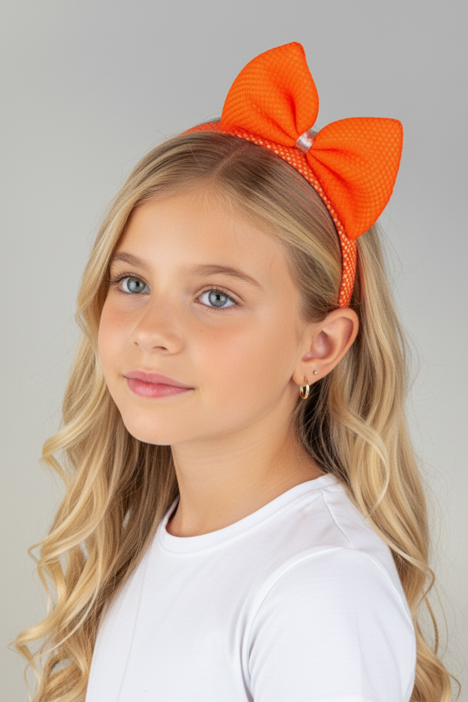 Neon Fileli Dik Kulaklı Çocuk Tacı Turuncu