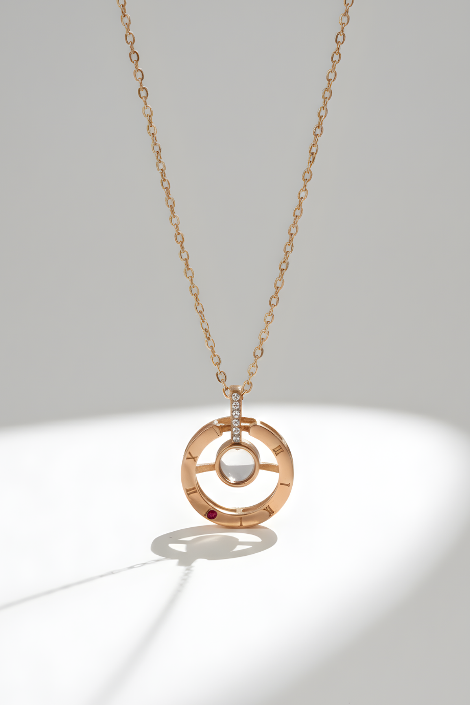 İnce bir estetik ile kolye ucundaki taşa işlenen kalp ve seni seviyorum yazısı ürüne farklılık katıyor. Bronz renk zincirimize takılı olan kolye ucundaki gizlenen bu mesajı yansıtabilmek için şeffaf taşın arkasından güçlü bir ışık tutmanız yeterli. Aşkın ifadesini boyunda taşımak için özel bir kolye.